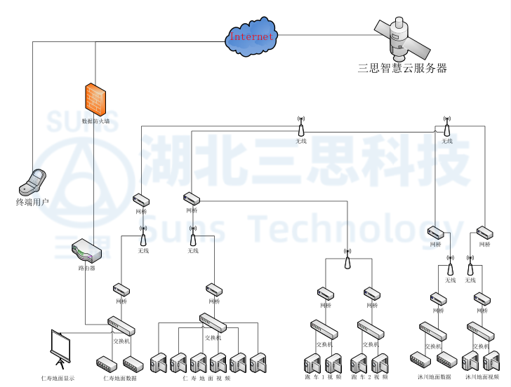 ▲纜索吊監(jiān)控系統(tǒng)網(wǎng)絡(luò)拓撲圖