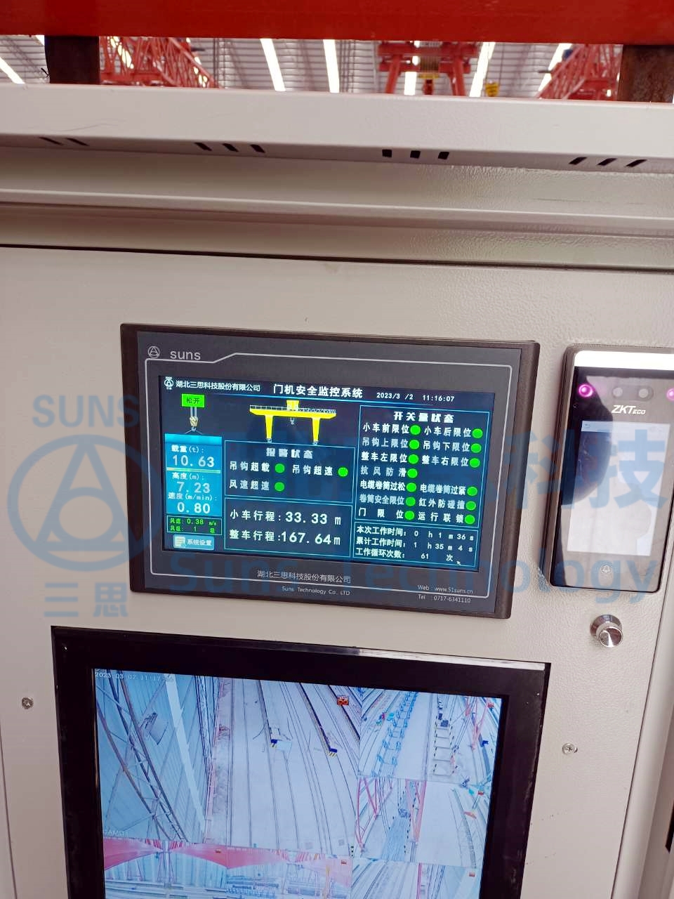 本門機(jī)安全監(jiān)控管理系統(tǒng)由視頻監(jiān)控系統(tǒng)和安全監(jiān)控系統(tǒng)組成。系統(tǒng)實(shí)時(shí)顯示起重機(jī)的運(yùn)行狀態(tài),如:天車動(dòng)作記錄,整車動(dòng)作記錄,主鉤動(dòng)作記錄,副鉤動(dòng)作記錄等。