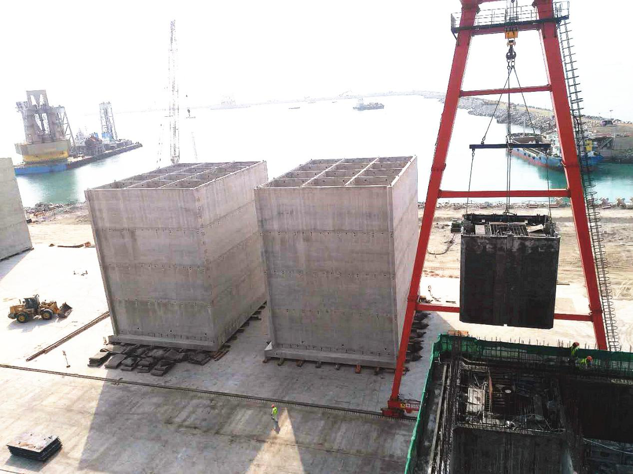 項(xiàng)目主要是建造4個(gè)總長(zhǎng)為1400米深15 萬(wàn)噸級(jí)集裝箱碼頭泊位、一條3558米的防波堤及近 130 公頃的陸域吹填及相關(guān)疏浚工作,以容納先進(jìn)的港口裝卸設(shè)備和大型船舶,建成后將給特碼港提供四個(gè)深水泊位,全長(zhǎng)1.4公里的碼頭,每個(gè)深水泊位同時(shí)配備精密的集裝箱操作起重機(jī)和碼頭作業(yè)系統(tǒng)。它的容量將達(dá)到普通集裝箱碼頭的四倍左右,同時(shí)具備裝卸世界上最大的集裝箱船的實(shí)力。