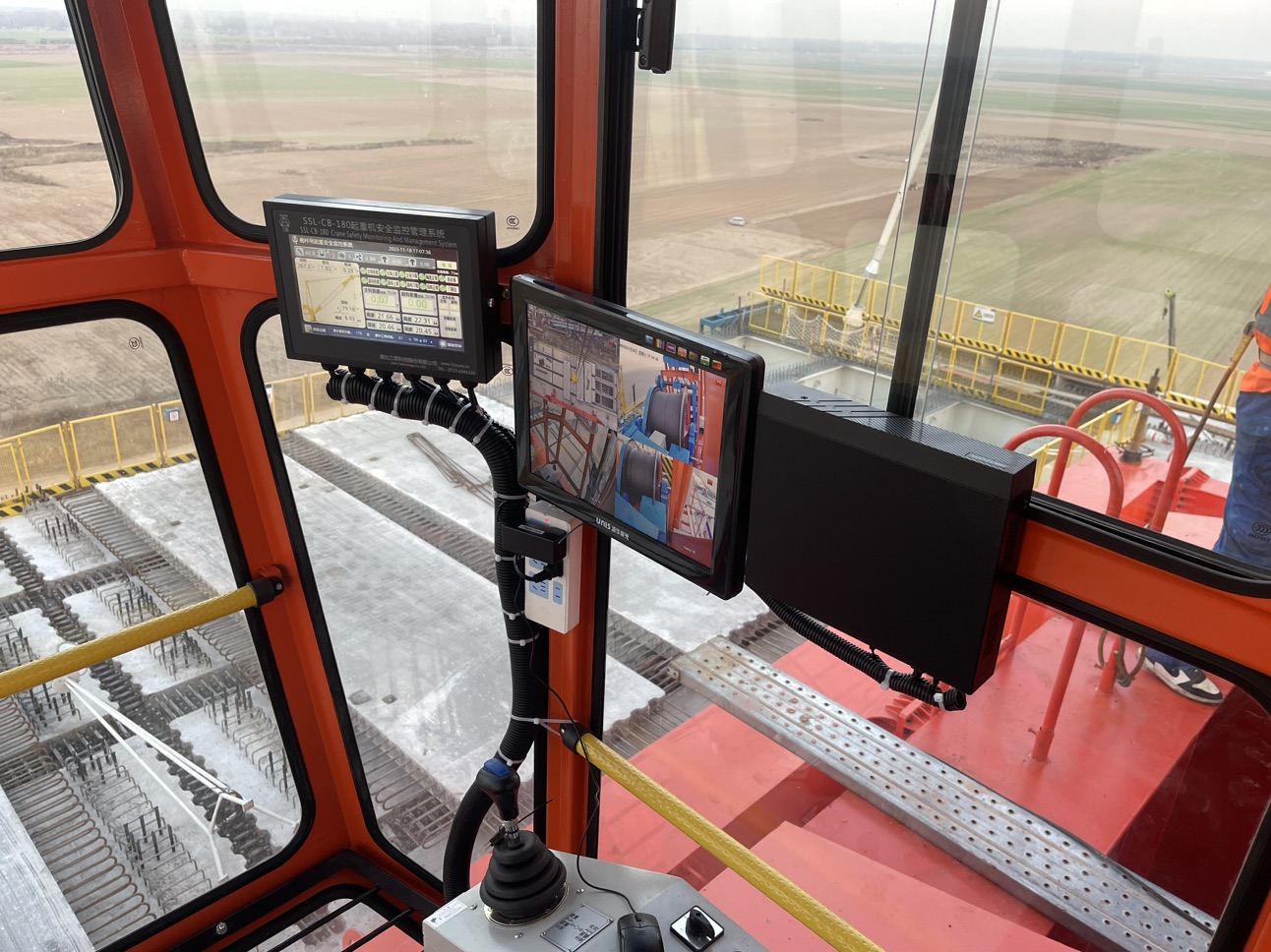 桅桿吊起升卷揚(yáng)、變幅卷揚(yáng)各裝1路攝像頭,用于監(jiān)控現(xiàn)場電機(jī)卷揚(yáng);桅桿吊桿頭裝一路球機(jī),用于監(jiān)控吊裝區(qū)域。監(jiān)控設(shè)備的視頻監(jiān)控顯示器放置于司機(jī)室內(nèi),可以讓駕駛員全方位掌握桅桿吊的實(shí)時(shí)運(yùn)行狀況,提高了操作的安全性。