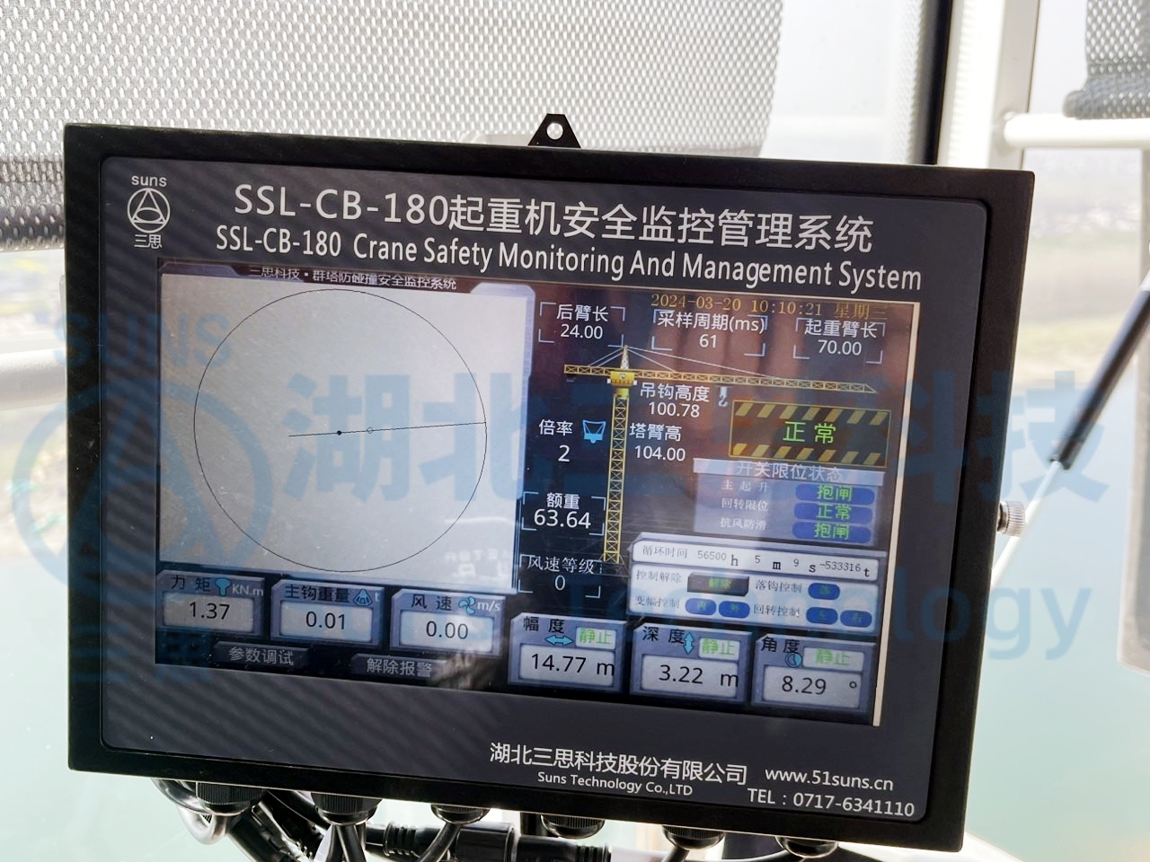 主機(jī)采用10英寸顯示屏,能實(shí)時(shí)顯示工地現(xiàn)場(chǎng)塔機(jī)運(yùn)行狀況,通過無線網(wǎng)絡(luò)把各種傳感器采集的參數(shù)實(shí)時(shí)上傳到智慧工地監(jiān)管平臺(tái),實(shí)現(xiàn)系統(tǒng)監(jiān)管。