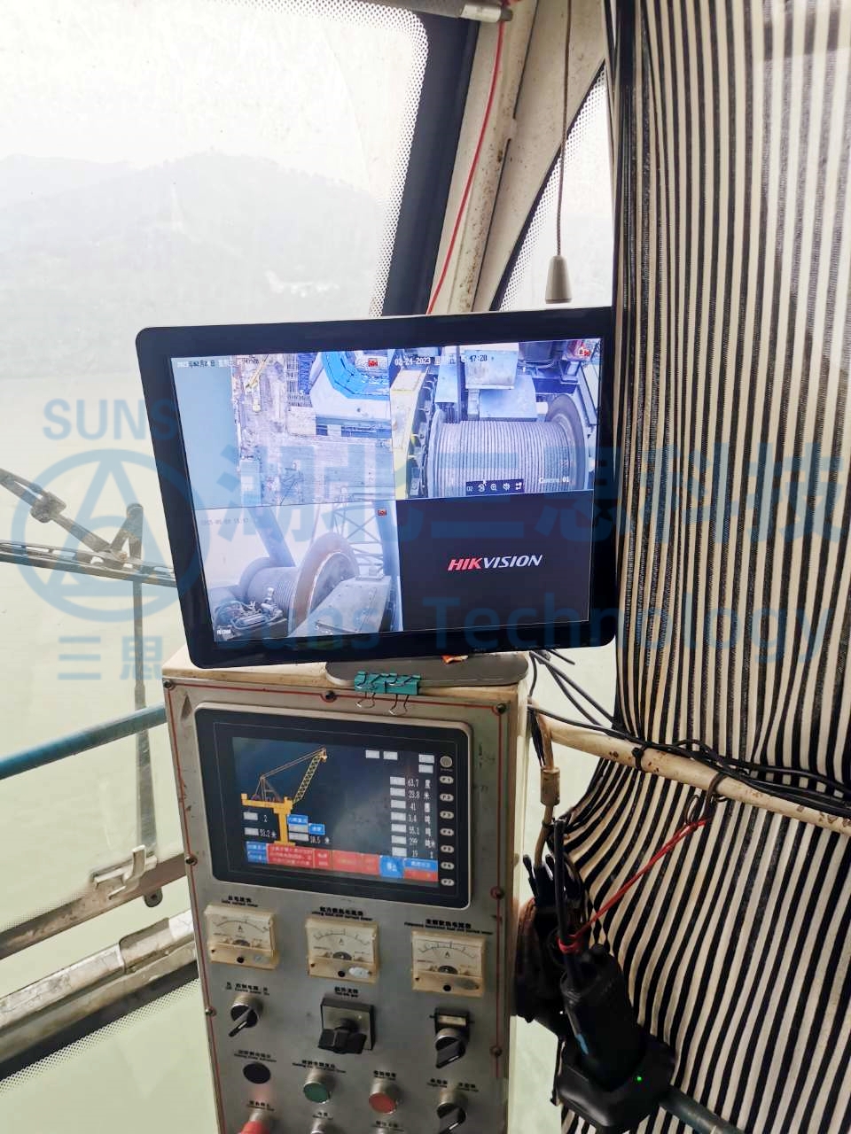 視頻監(jiān)控系統(tǒng)監(jiān)測塔吊的起升卷揚(yáng)、行程卷揚(yáng)、吊裝區(qū)域,視頻顯示器放置于駕駛室中,給駕駛員帶來更加寬廣的操作視野,提高了塔吊操作便捷性。