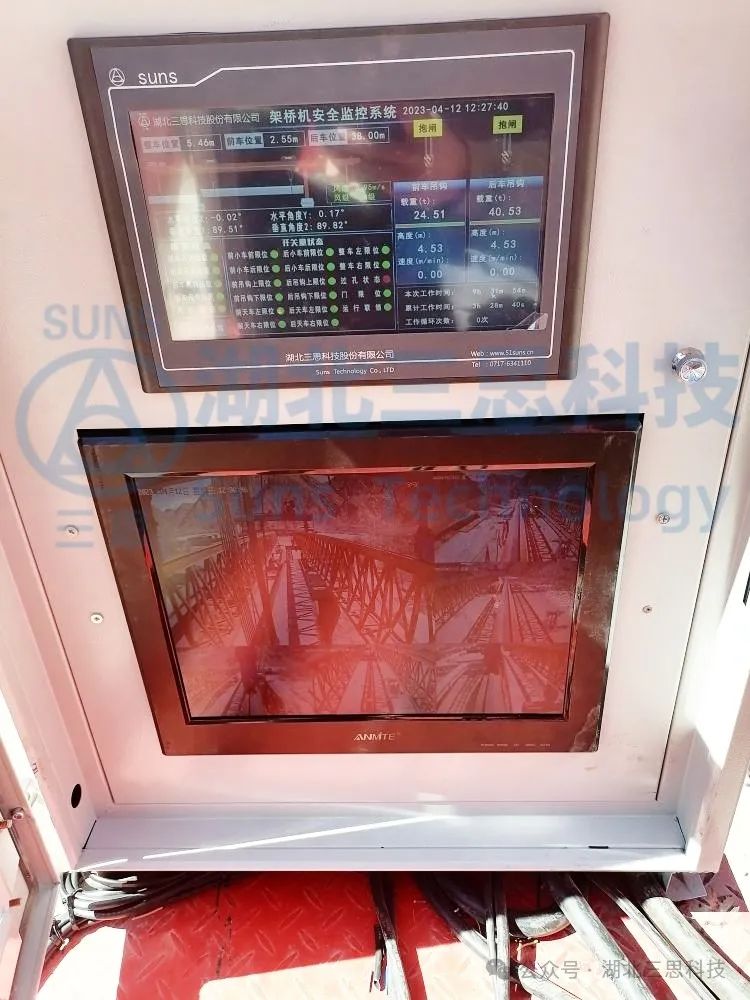 視頻監(jiān)控系統(tǒng)監(jiān)測架橋機的過孔狀態(tài)、架梁狀態(tài)、運梁車同步狀態(tài),視頻顯示器放置于駕駛室中或者主機電箱內(nèi),給駕駛員帶來更加寬廣的操作視野,提高了架橋機操作便捷性。