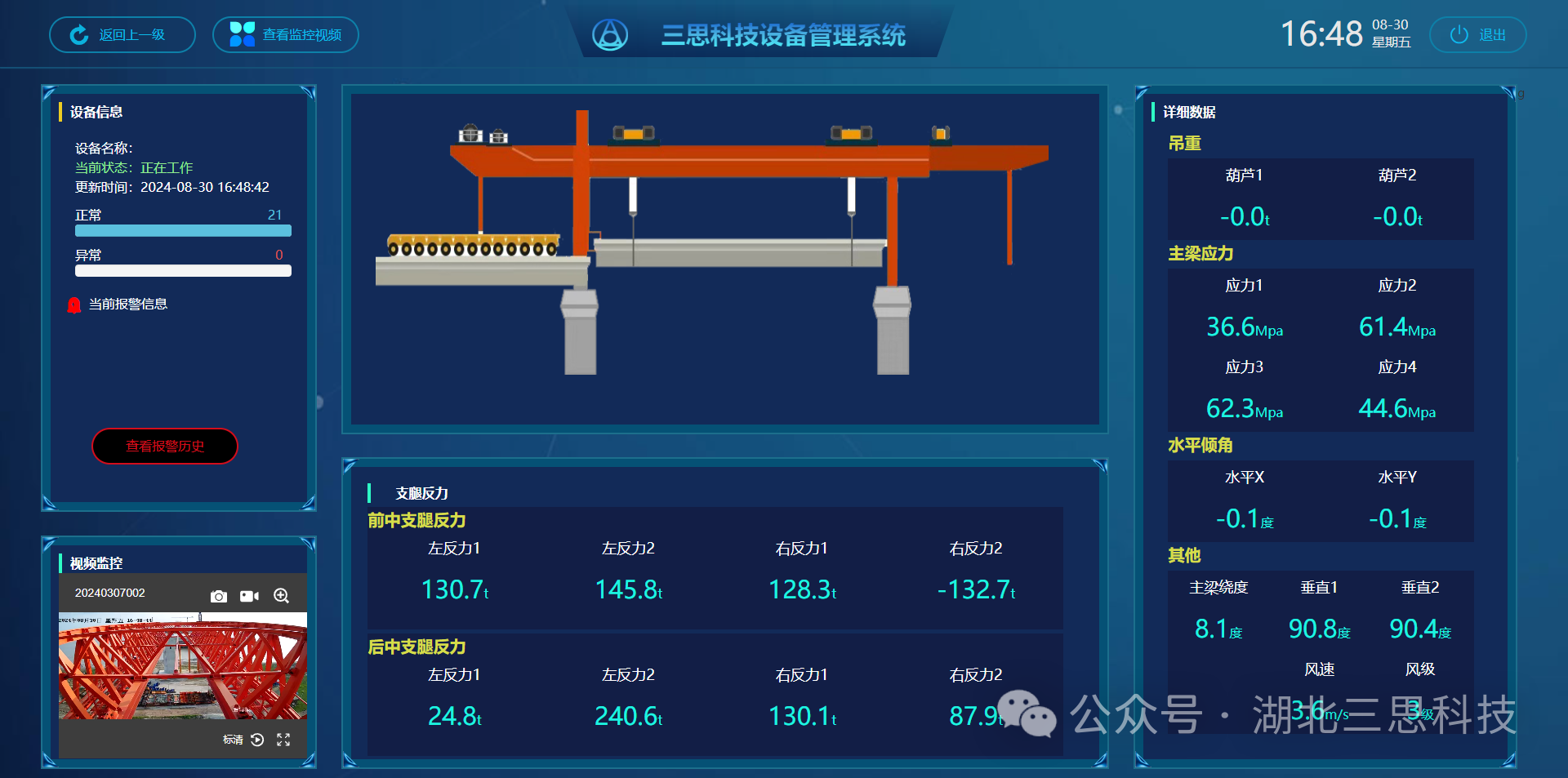 在設(shè)備4個承重支腿等重要部位、模板工作區(qū)域約8處,均設(shè)置海康威視高清攝像頭,做到對工作環(huán)境的實(shí)時監(jiān)測。