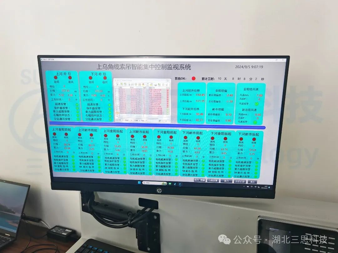 ⑨遠(yuǎn)程遠(yuǎn)程監(jiān)測(cè):系統(tǒng)可將實(shí)時(shí)監(jiān)控?cái)?shù)據(jù)上傳至云端,并在手機(jī)APP及PC服務(wù)器上實(shí)時(shí)查看纜索吊各項(xiàng)數(shù)據(jù)。