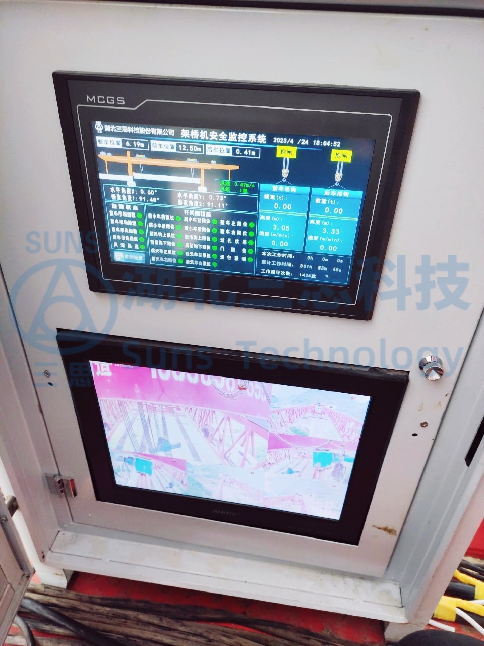 視頻監(jiān)控系統(tǒng)監(jiān)測(cè)架橋機(jī)的過孔狀態(tài)、架梁狀態(tài)、運(yùn)梁車同步狀態(tài),視頻顯示器放置于駕駛室中或者主機(jī)電箱內(nèi),給駕駛員帶來(lái)更加寬廣的操作視野,提高了架橋機(jī)操作便捷性。