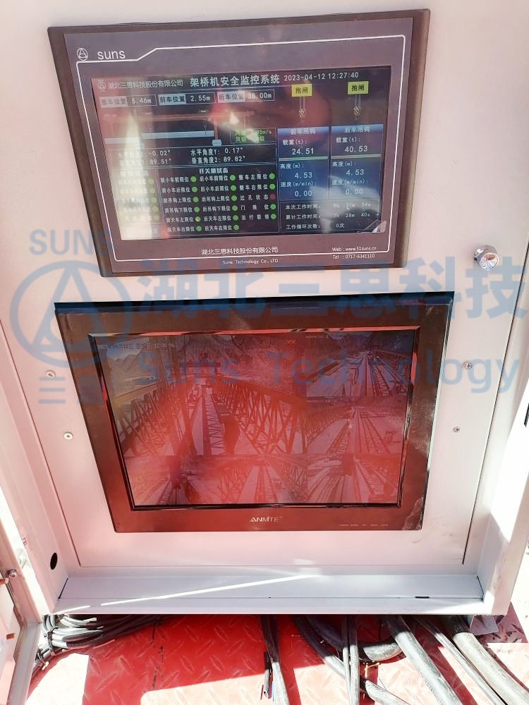 視頻監(jiān)控系統(tǒng)監(jiān)測(cè)架橋機(jī)的過孔狀態(tài)、架梁狀態(tài)、運(yùn)梁車同步狀態(tài),視頻顯示器放置于駕駛室中或者主機(jī)電箱內(nèi),給駕駛員帶來更加寬廣的操作視野,提高了架橋機(jī)操作便捷性。