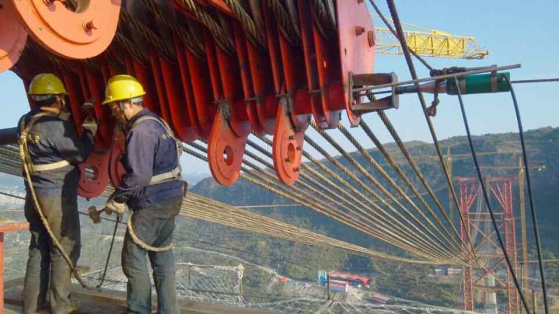 纜索起重機是指掛有取物裝置的起重小車沿著架空的承載索運行的一類工程起重機。同其他起重機械相比,它具有跨度大、速度快、效率高、總體結(jié)構(gòu)簡單、造價低廉、施工周期短等突出優(yōu)點,并且不受氣候和地形條件的限制,在特定的條件下能發(fā)揮其他起重機械和起重技術(shù)所不能發(fā)揮的作用。因而它被廣泛應(yīng)用于采礦工業(yè)、森林工業(yè)、工業(yè)原料場、碼頭、渡口以及橋梁、水電建筑工程的起重和施工作業(yè)中。